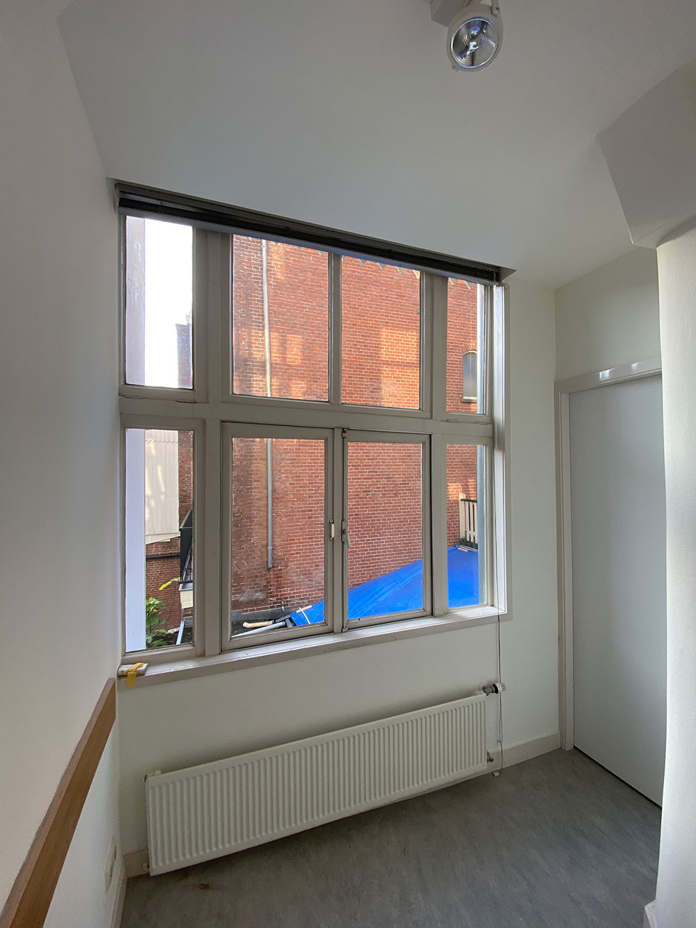 BG: Hal met deur naar appartement. Het appartement bevindt zich aan de achterzijde van het gebouw met een patio.