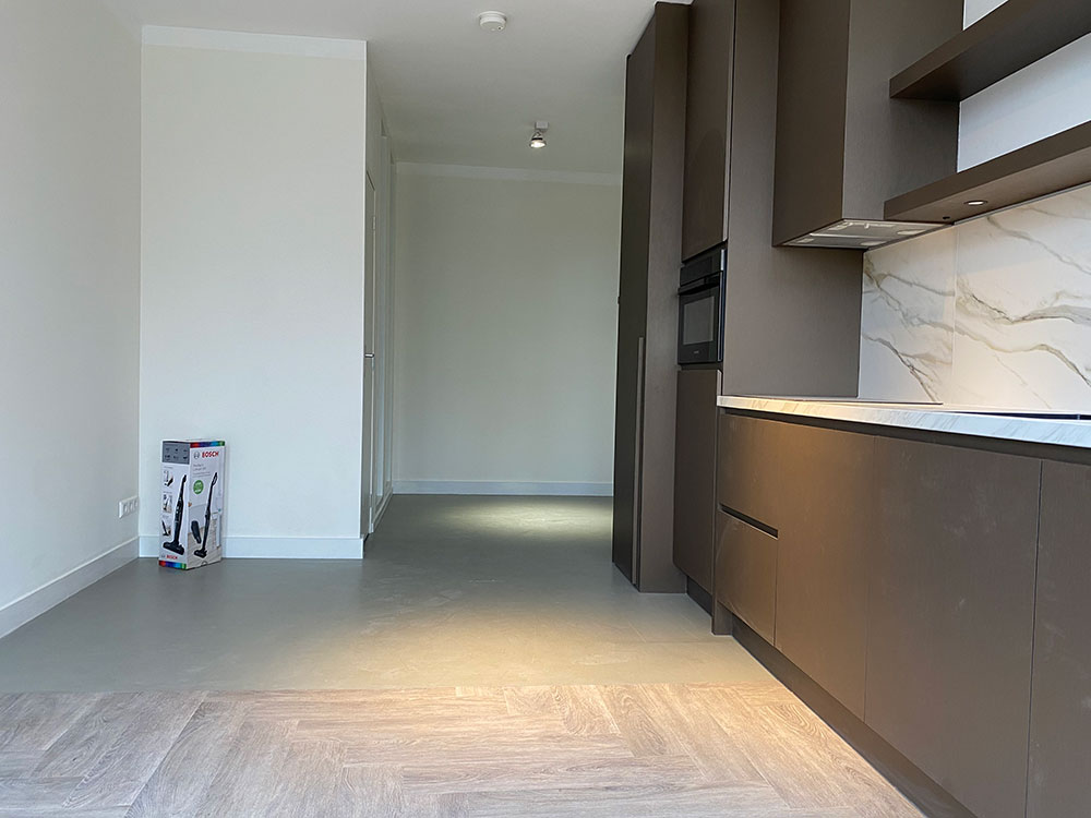 Vervolgens kom je in de keuken die in open verbinding staat met de zeer lichte woonkamer.