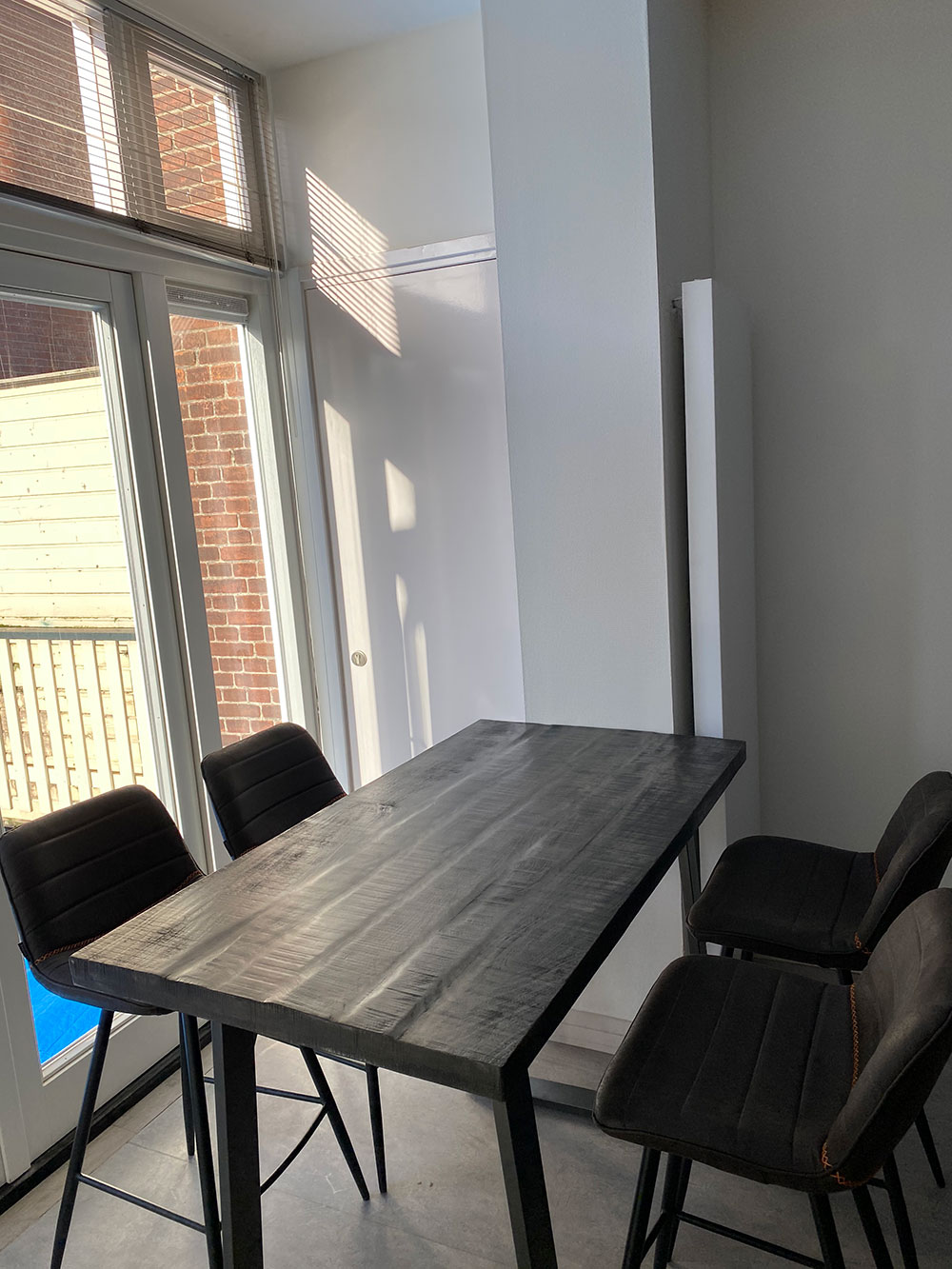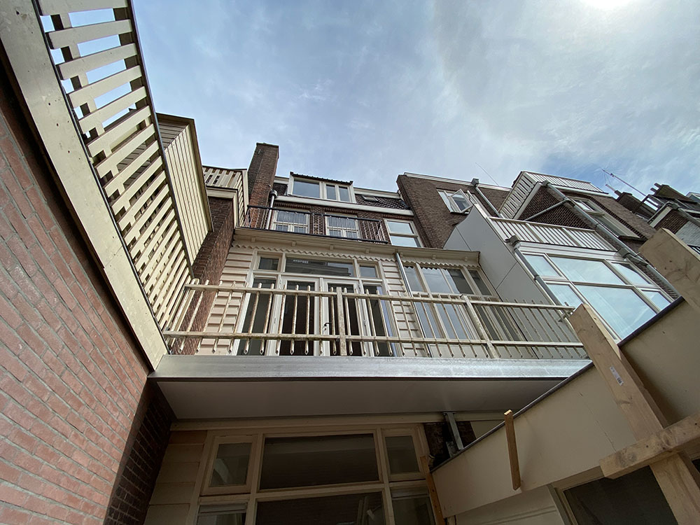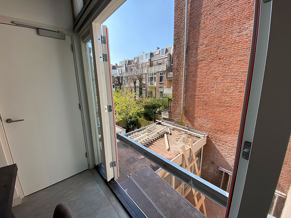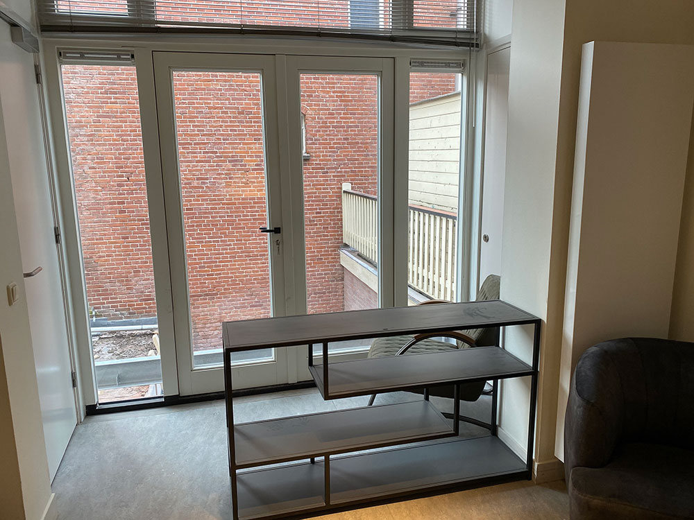 Aan de achterzijde van het appartement (vanuit de woonkamer) zijn er maar liefst 2 grote openslaande deuren die je naar het balkon brengen waar je heerlijk kunt genieten van je middag en avond zon met uitzicht op de tuinen van de panden naast je. Het is een balkon over de gehele achterzijde, dus zowel voor de woonkamer als voor de slaapkamer.